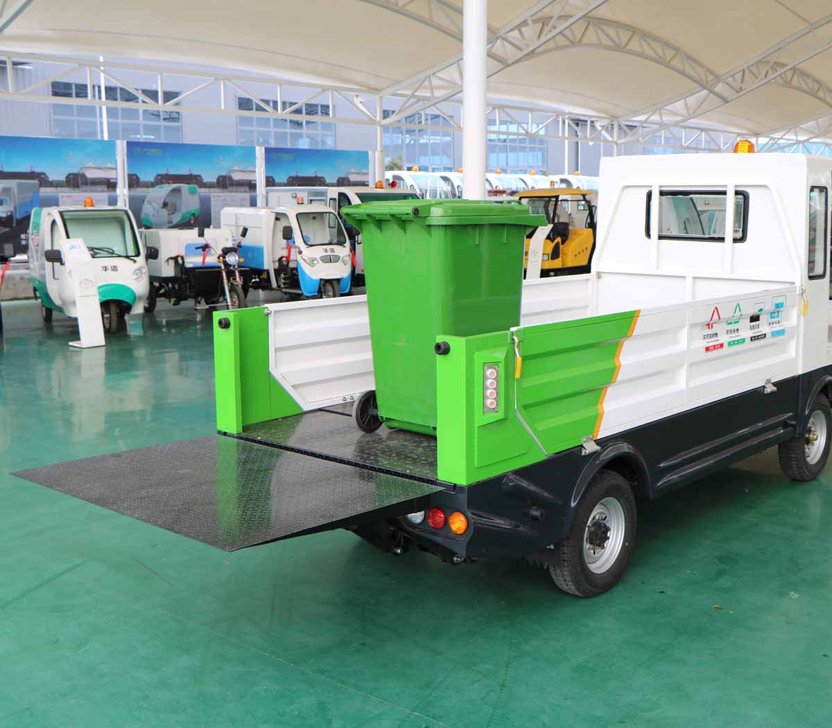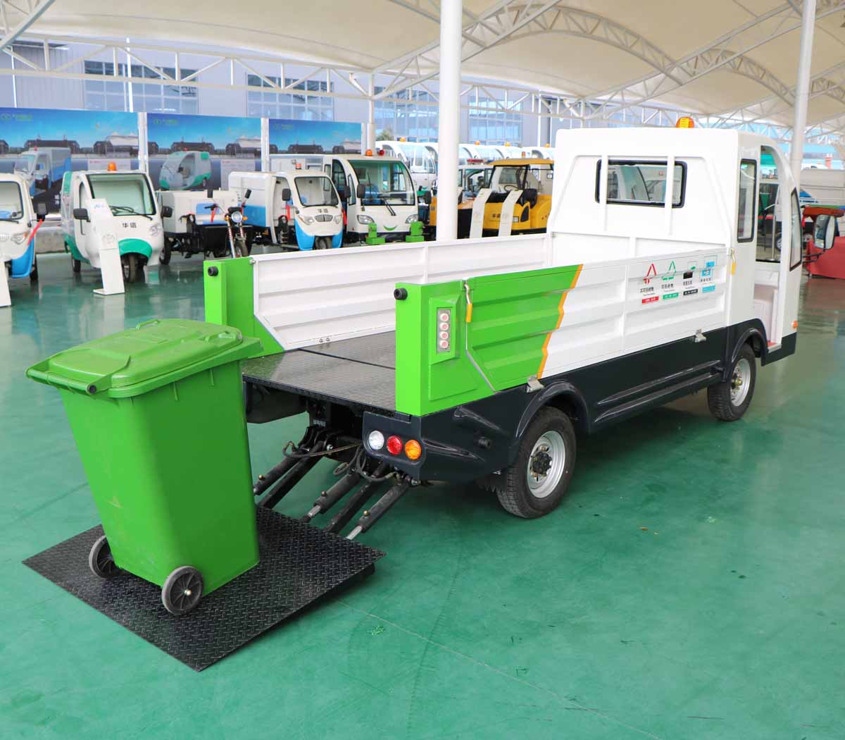7 | 車廂地板采用防滑花紋鋼板,可防止垃圾桶在運輸與轉運過程中打滑。 |