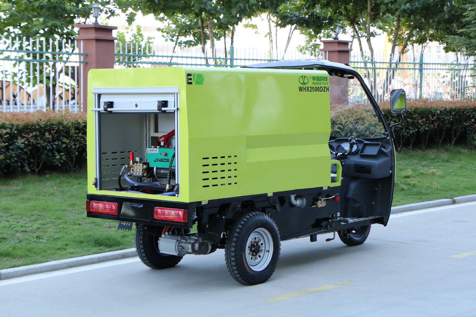 (6)車輛驅動設計為后橋式驅動,電機為1500W配有減速齒輪裝置,加到車輛牽引力增強爬坡性能;